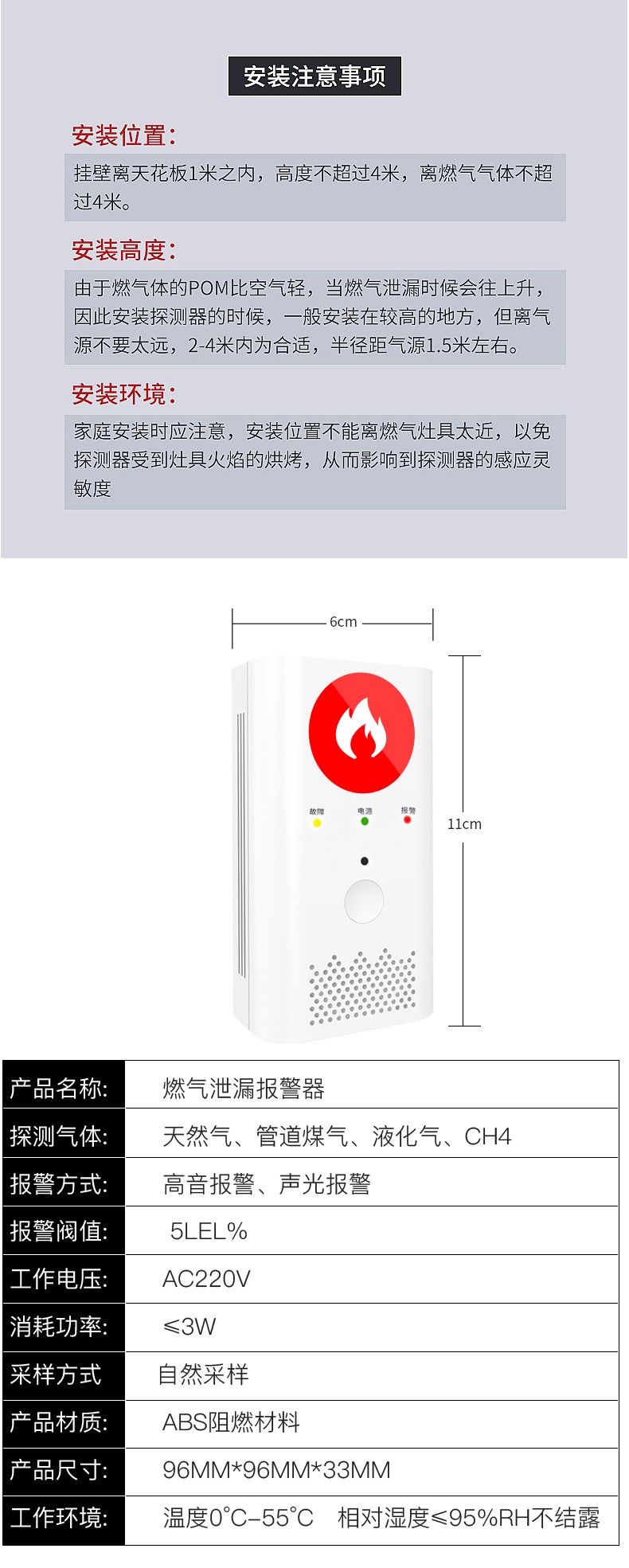 家用无线智能燃气报警器(型号PA-210)