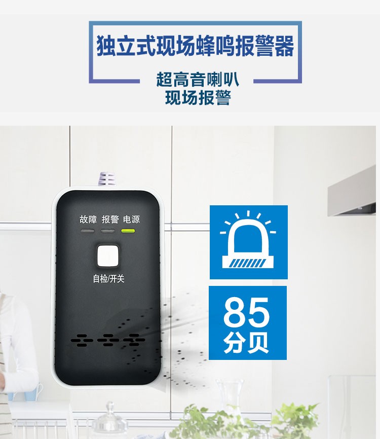报警方式:声光报警;联动电磁阀输出(可选);常开/常闭输出(可选)