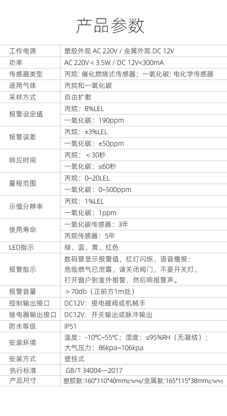 家用和小型餐饮厨房燃气报警器 (型号BYBXYD-PA-224B)