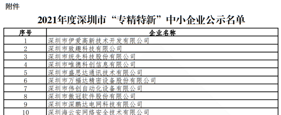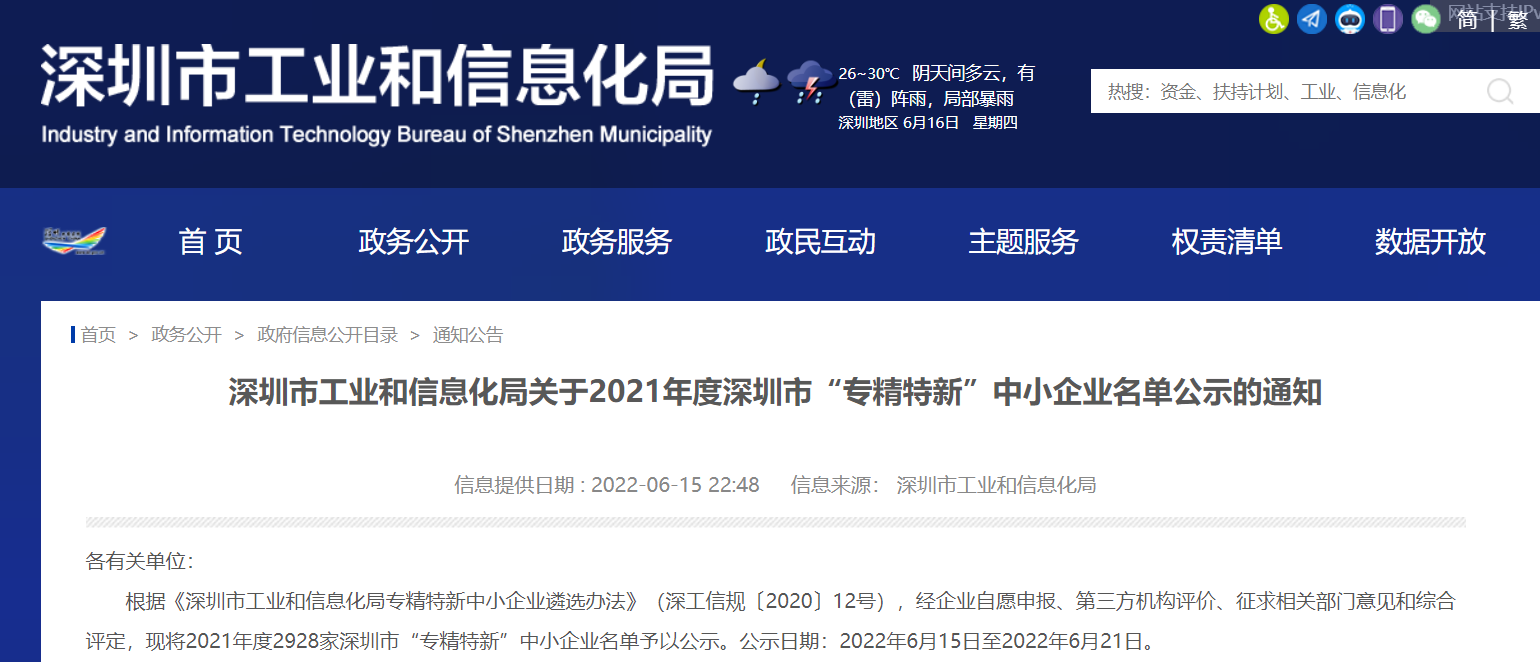 近期,深圳市工业和信息化局公布了2022年度第一批深圳市拟认定专精特新企业名单。J9直营集团集团荣获“专精特新”企业称号,凭借在智能安全领域的专业化深耕和自主创新实力,荣获本次深圳市专精特新企业荣誉称号。