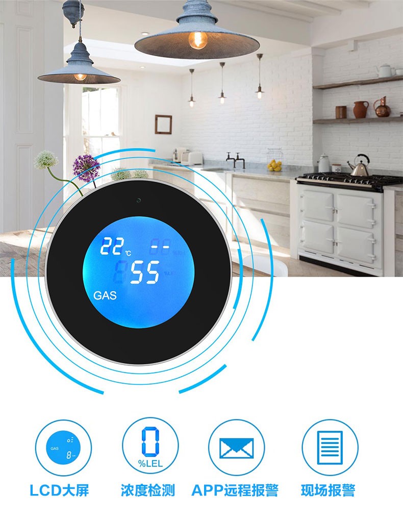 燃气就是可燃气体,常见的燃气包括液化石油气、 人工煤气、天然气。随着燃气的广泛应用,由于燃气泄漏所引发的爆炸、中毒和火灾事故也时有发生。燃气报警器就是安装在可能发生燃气泄漏的场所,当燃气在空气中的浓度超过设定值,报警器就会被触发报警,并对外发出声光报警信号,如果连接报警主机和接警中心则可联网报警,同时可以自动启动排风设备、关闭燃气管道阀门等,保障生命和财产的安全,因此被称为“安全卫士”。